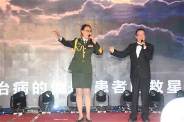 歌唱家任麗蔚攜現(xiàn)已被抗風(fēng)竤治愈的曾癱瘓7年、自殺3次的重癥痛風(fēng)患者翟梓元在會(huì)上激情演唱《抗風(fēng)竤之歌》