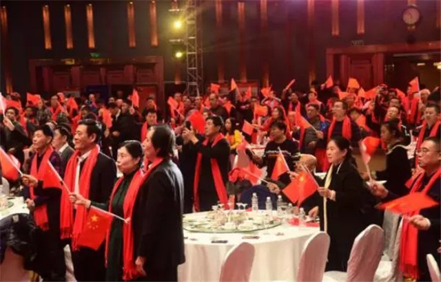 會(huì)上在全場高聲合唱《我和我的祖國》歌聲中結(jié)束